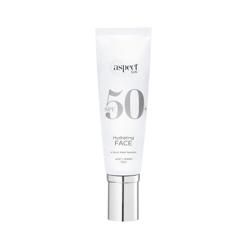 Aspect Sun Hydrating Face SPF 50+ provides a blend of antioxidants and broad spectrum UV protective actives to deliver very high sun protection, as well the ultimate nourishment for skins in need of more support against ageing and damaging effects of UV exposure. The combination of UV protection and smoothing effects of silica in Hydrating Face SPF 50+ provides the skin with an immediate even glow, while glycerin helps to plump and boost hydration. Perfect to use prior to the application of makeup to increase longevity and stay protected.