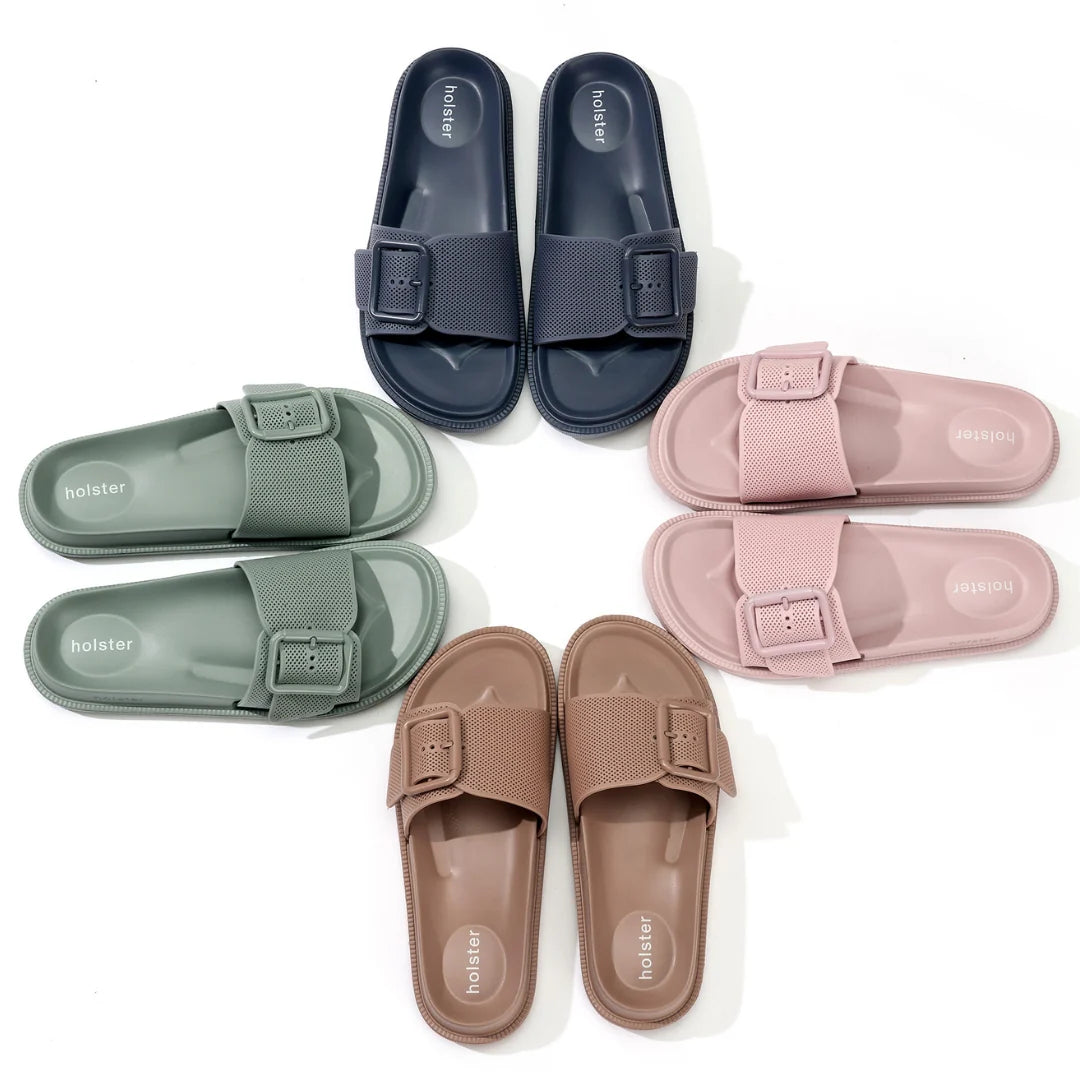 Meet Laze - your new go-to slide for embracing those chill Noosa vibes! With a sleek, minimalist design and earthy hues, these slides are all about laid-back luxury. The cushioned footbed cradles your feet in comfort, while the adjustable buckle ensures the perfect fit. Made from 100% cruelty free, vegan materials, Laze is as kind to the planet as it is to your feet. Whether you're strolling the beach or lounging at home, these slides will have you feeling comfy and carefree.