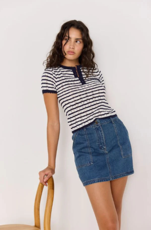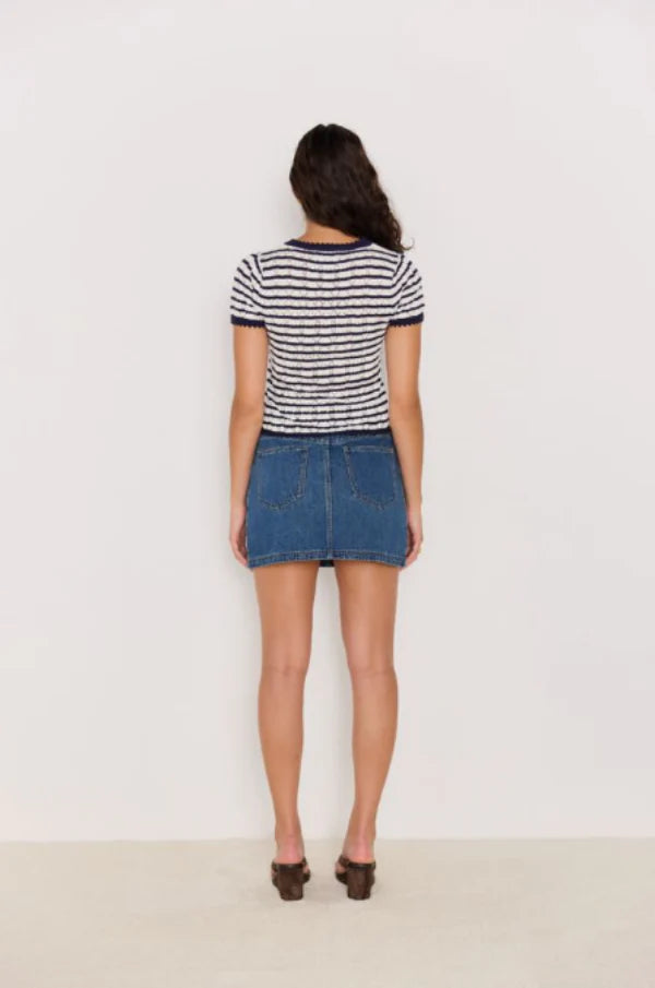 MINKPINK CHLOE STRIPE KNIT TEE - Navy/White