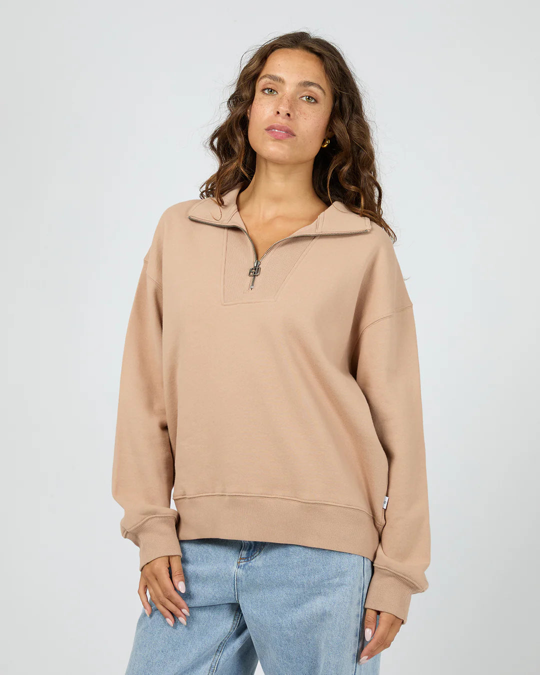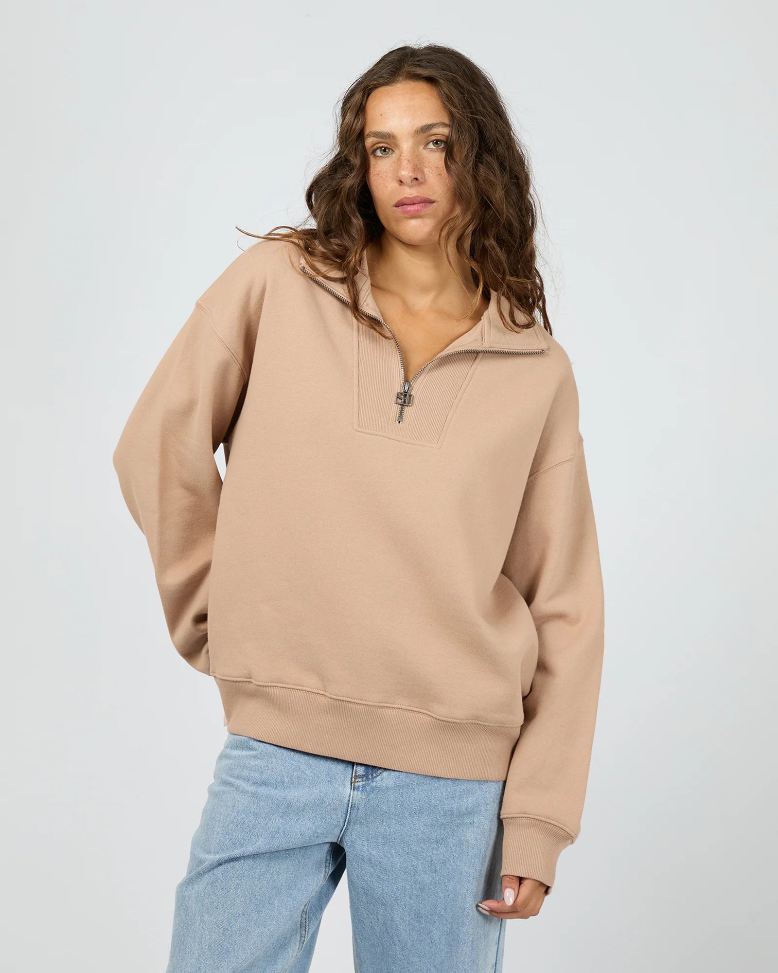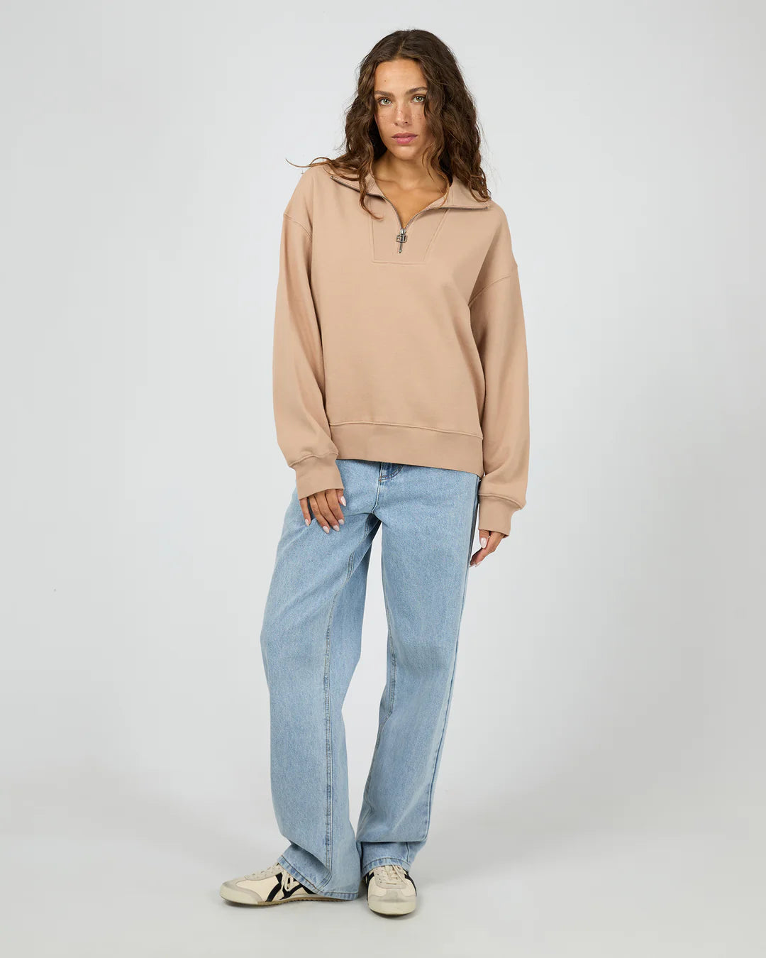 SILENT THEORY Luxe 1/4 Zip Crew - Taupe