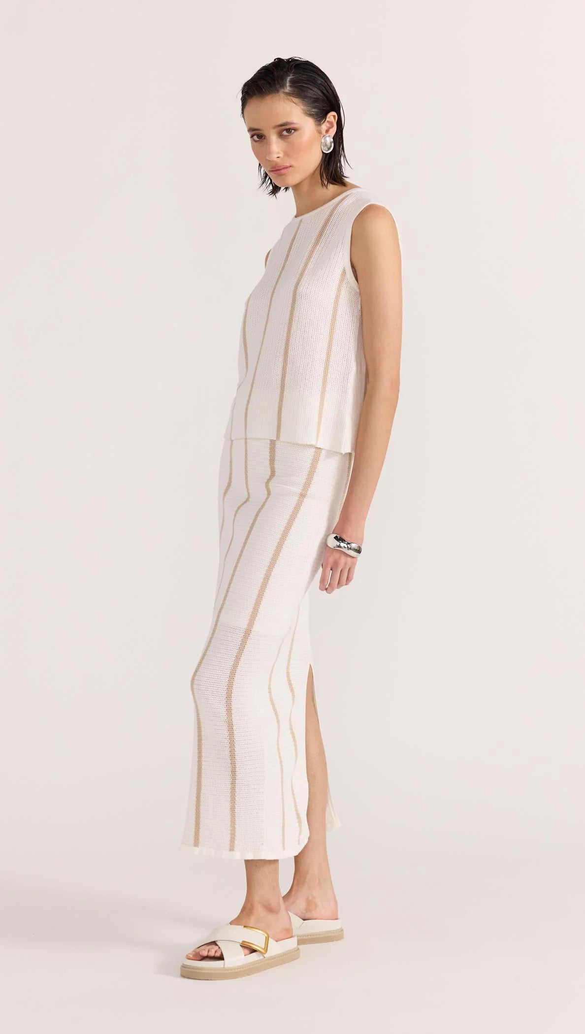 The Allegra Knit Midi Skirt is a trans seasonal favourite. Featuring a straight fit, and striped knit fabrication. Pair yours with the matching Allegra Knit Top by Staple the Label to complete the look.