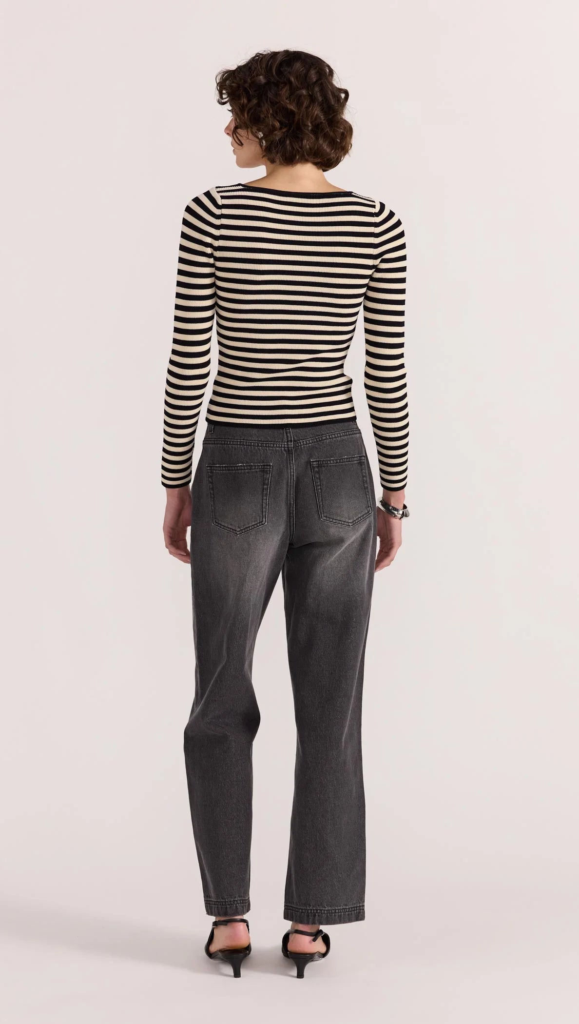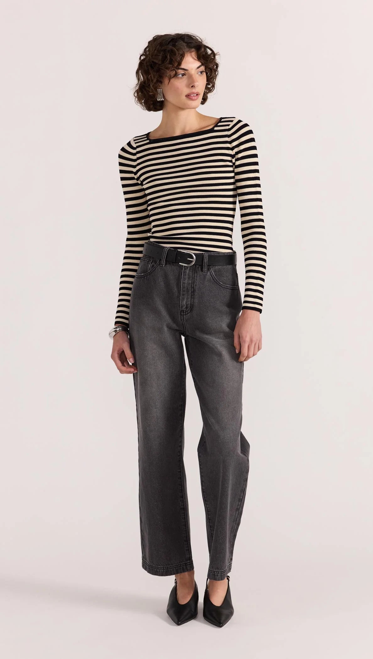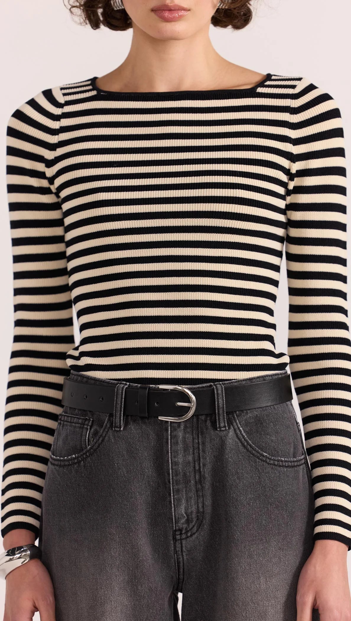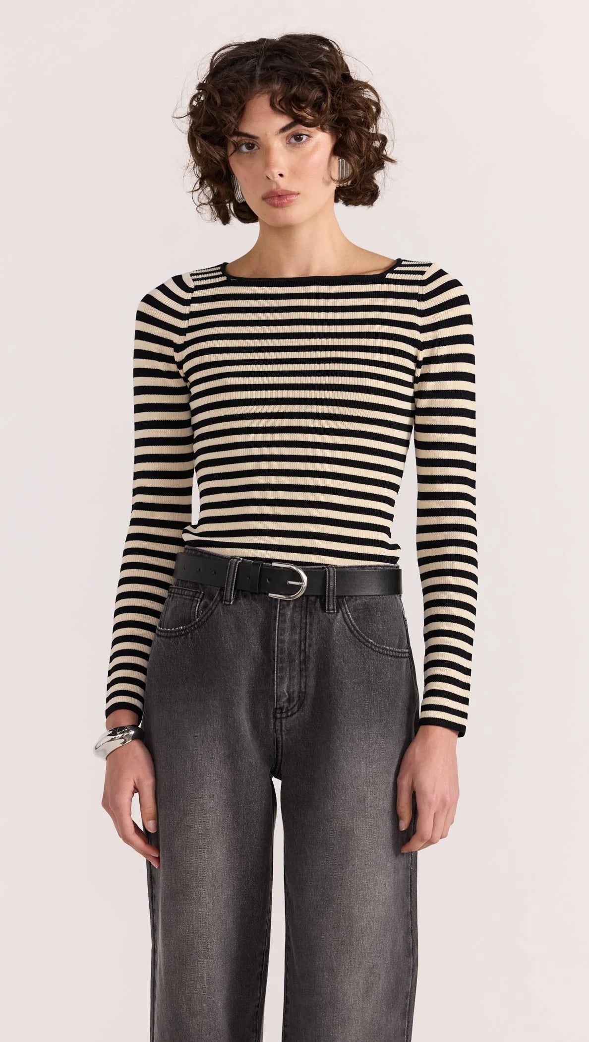 STAPLE THE LABEL Lana Stripe Knit Top - Black/Cream