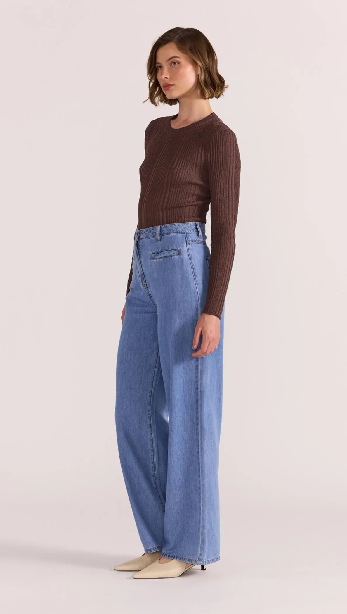 STAPLE THE LABEL Lyla Wide Leg Jeans - Vintage Blue Denim